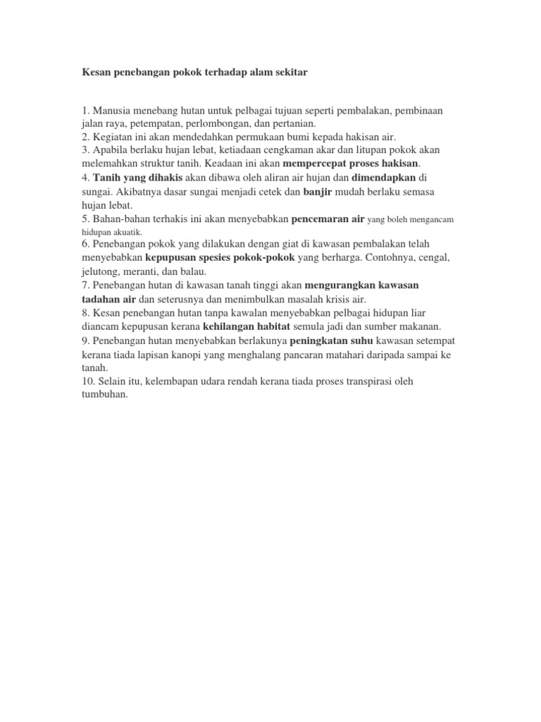 Ain izzati binti ilias student 1 month ago. Kesan interaksi yang melampau akan memberi kesan negatif kepada alam sekitar. Berlakunya pencemaran air sungai akibat pembuangan sisa kumbahan daripada penempatan dan. Oleh sebab itu, mereka harus belajar bertanggungjawab menjaga keadaan alam sekitar dari sekarang jika tidak mahu alam sekitar tercemar dan musnah. Pencemaran alam sekitar sudah wujud sejak dari zaman batu lagi apabila manusia mula belajar untuk menghidupkan api.