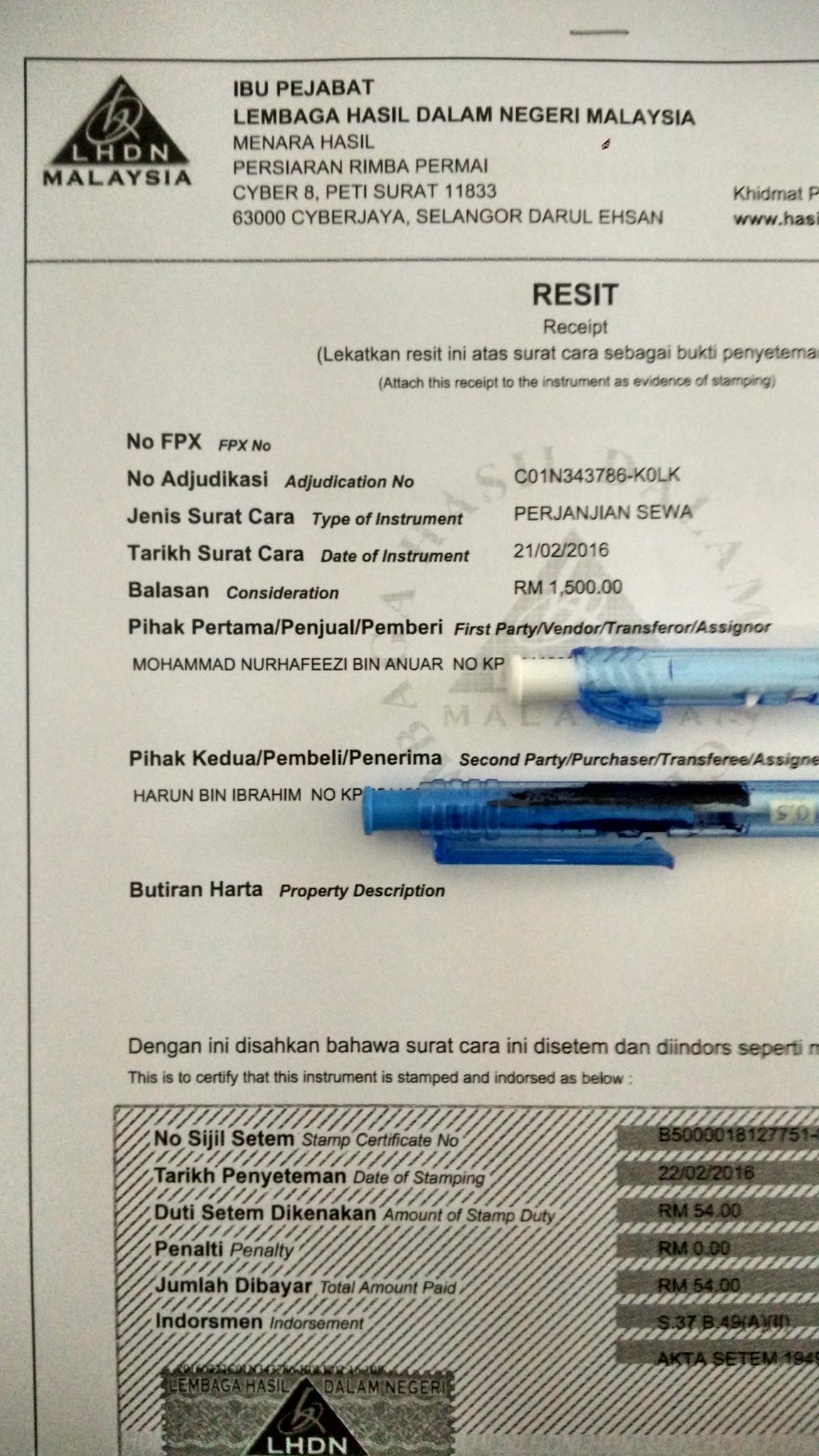 Related : Stamp Duty Malaysia Lhdn - Admissible in court) until it is stamped by lembaga hasil dalam negeri malaysia (lhdn) or inland revenue board of malaysia..